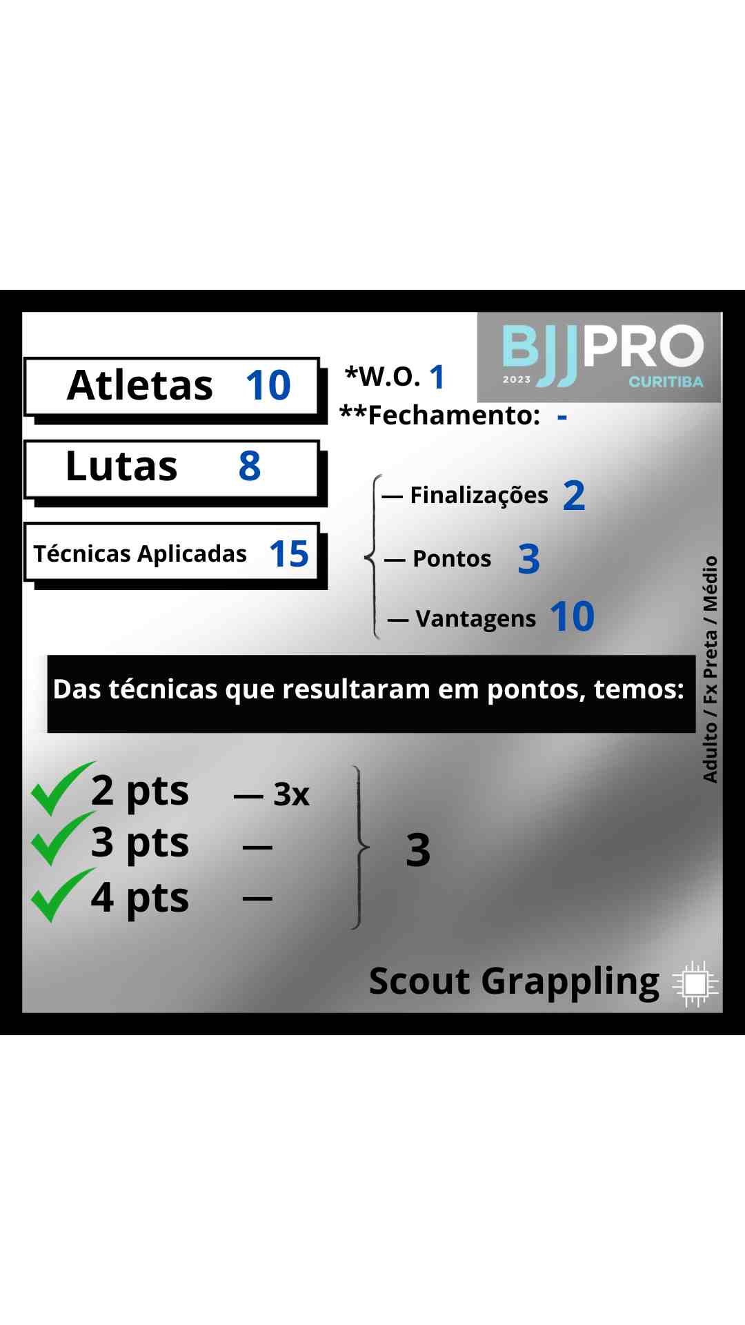 Como podemos observar na imagem, foram aplicadas 15 Técnicas ao longo das 8 lutas.