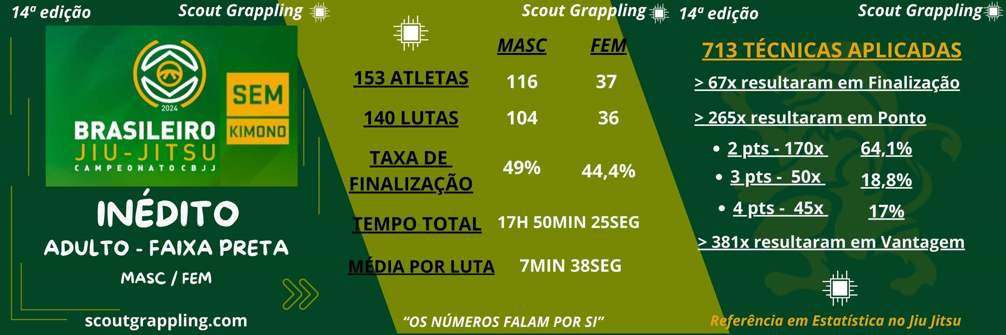 A Scout Grappling apresenta, de forma INÉDITA, uma abordagem jamais visto antes sobre as as lutas, em especial, a categoria ADULTO – FAIXA PRETA, considerada a elite do esporte.
