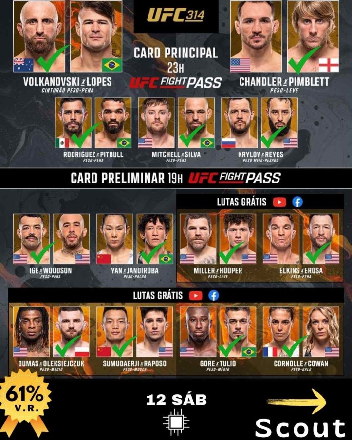 E na luta principal, com certeza foi uma luta memorável para o brasileiro Diego Lopes, que foi superado por Decisão Unânime pelo experiente Alexander Volkanovski, que se tornou o 1° atleta do peso Pena com mais de 35 anos a sagrar-se campeão.