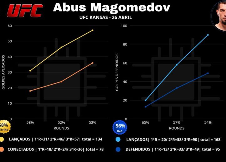 A escalada de Magomedov é resultado direto de um novo ciclo de evolução técnica, física e mental. Desde a derrota para Caio Borralho, o atleta iniciou um trabalho de reestruturação ao lado do preparador físico Itallo Vilardo — referência internacional em performance esportiva. O impacto é claro: maior volume, mais potência, mais precisão. Contra Michel Pereira, Abus lançou 134 golpes, sendo 57 apenas no terceiro round. Registrou 78 golpes significativos conectados — um salto de 60% sobre seu recorde anterior (47 contra Sean Strickland).